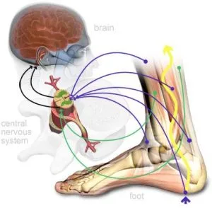Dit doen we door het visuele hulpstuk uit te schakelen (de ogen) en volledig te concentreren op de signalen die van de hersenen via de zenuwen bij de enkel terechtkomen en controleren of we nog in de optimale positie staan om niet te vallen of door de enkel te zakken. Is dit niet het geval? Dan word dit gecorrigeerd met een mini aanpassing in de stand, en dit honderden(!) keren per minuut.